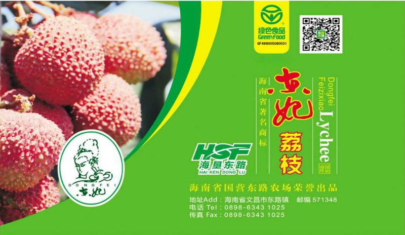產(chǎn)品特色:荔枝生產(chǎn)是東路農(nóng)場(chǎng)公司品牌主打產(chǎn)業(yè)之一,也是海南地區(qū)荔枝的重要產(chǎn)區(qū)之一。 “東妃”牌荔枝1992年從廣東東莞引進(jìn),現(xiàn)發(fā)展面積已達(dá)1.05萬(wàn)畝,其中荔枝標(biāo)準(zhǔn)化基地696.6畝,土壤農(nóng)藥殘留量、空氣質(zhì)量、水源等指標(biāo)均符合國(guó)家規(guī)定標(biāo)準(zhǔn),利用“生物導(dǎo)彈”“高效多功能殺蟲(chóng)平臺(tái)”等技術(shù)手段,防治荔枝害蟲(chóng),減少化學(xué)農(nóng)藥的污染。2002年,注冊(cè)“東妃”牌荔枝商標(biāo),同年被海南省農(nóng)業(yè)廳確認(rèn)為無(wú)公害農(nóng)產(chǎn)品產(chǎn)地認(rèn)證,2008年通過(guò)中國(guó)綠色食品發(fā)展中心認(rèn)定為“綠色食品”A級(jí)產(chǎn)品、獲得“海南著名商標(biāo)證書(shū)”,2014年獲國(guó)家農(nóng)業(yè)部產(chǎn)品質(zhì)量安全中心“無(wú)公害農(nóng)產(chǎn)品證書(shū)”,2015年被海南省農(nóng)業(yè)廳認(rèn)定為“海南名牌農(nóng)產(chǎn)品”,2017 年榮獲良好農(nóng)業(yè)(GAP)認(rèn)證。