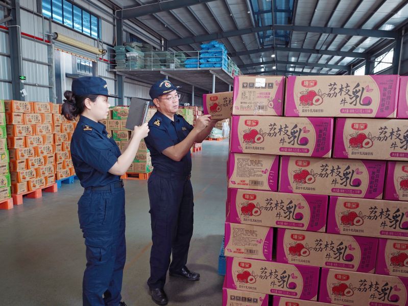 圖為:海關(guān)關(guān)員對荔枝牛乳進(jìn)行監(jiān)管