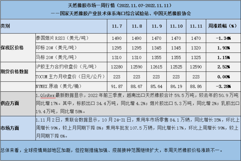天然橡膠、大豆、玉米市場(chǎng)一周行情(2022.11.07-11.11)