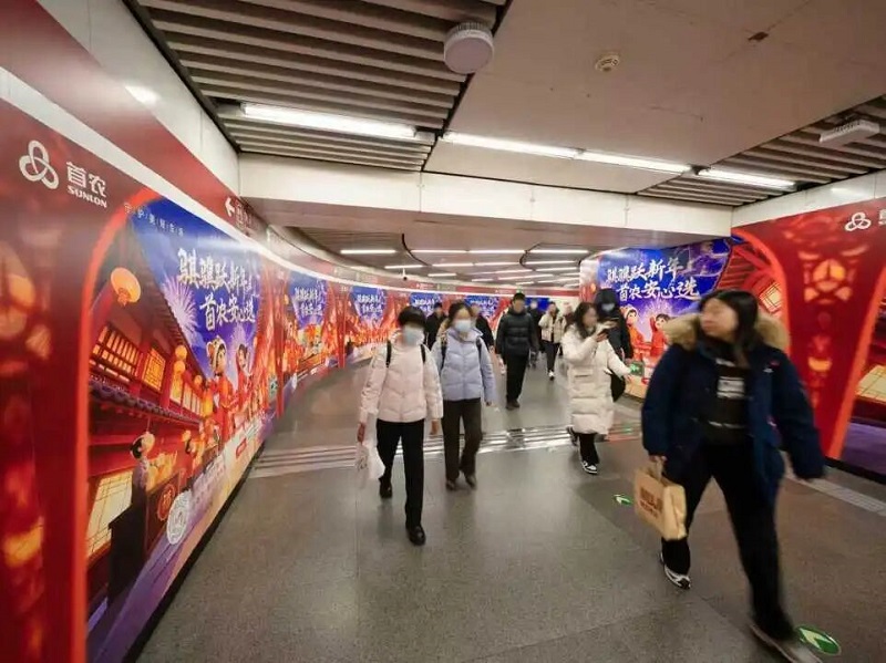 圍繞營銷活動商超門店、廟會市集點(diǎn)位、重點(diǎn)商圈,集團(tuán)在大望路和國家圖書館2個(gè)地鐵換乘站廳、全市250個(gè)公交車候車亭、1100余個(gè)住宅小區(qū)門禁、12000余個(gè)樓宇電梯以及京信城市大屏進(jìn)行廣告畫面集中投放;