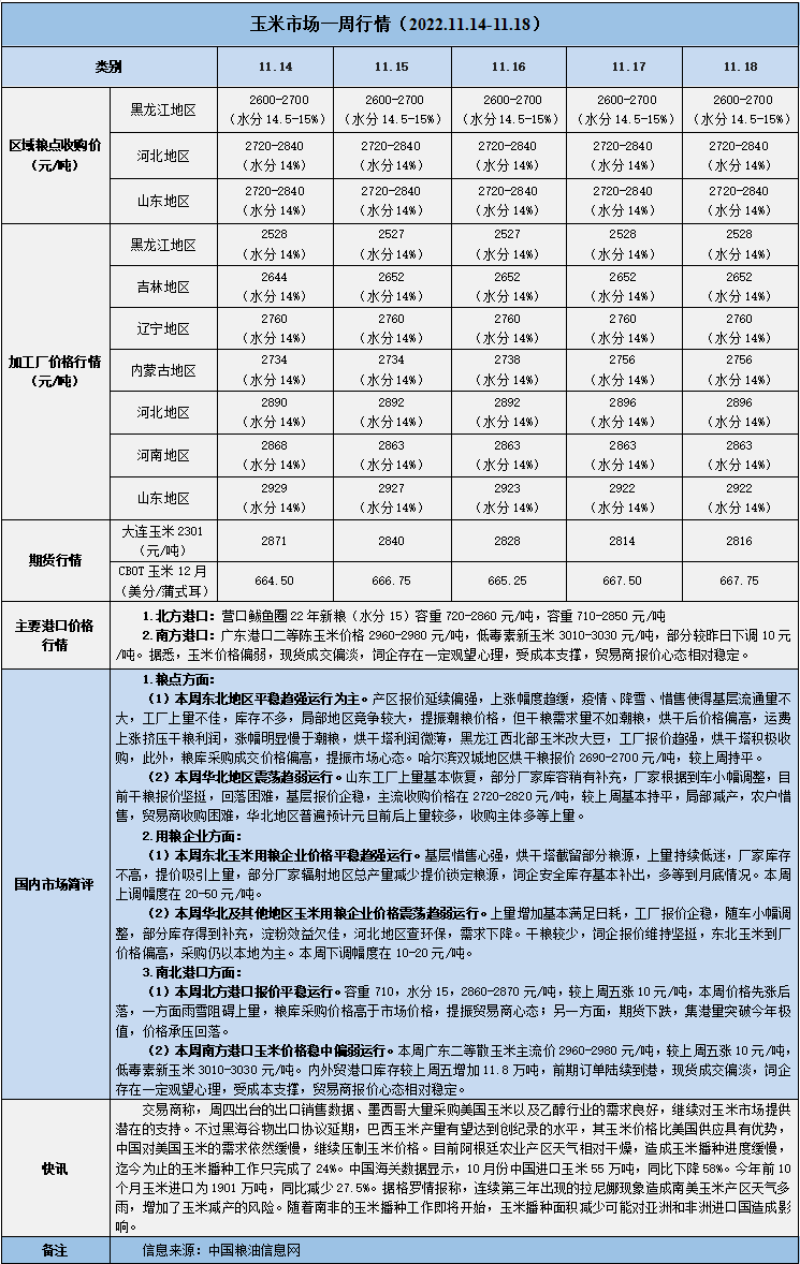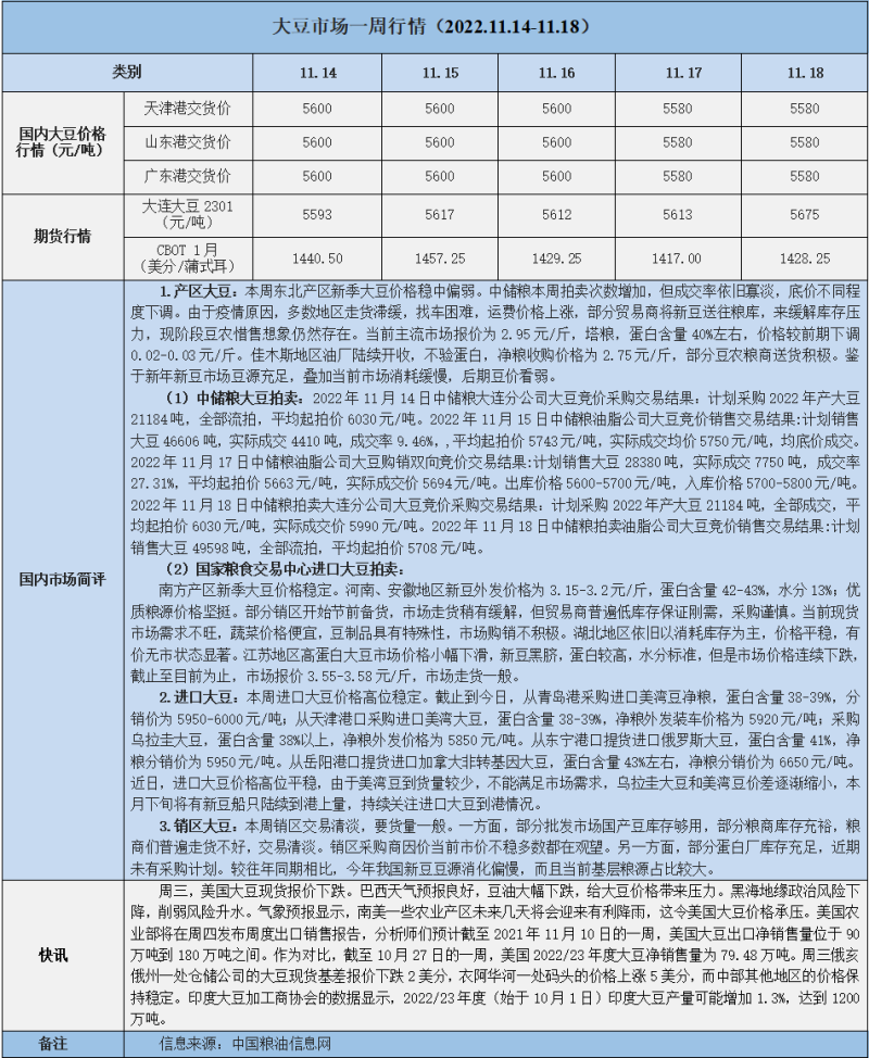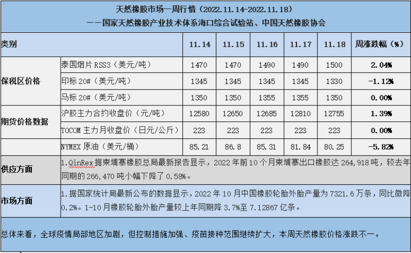 天然橡膠、大豆、玉米市場(chǎng)一周行情(2022.11.14-11.18)