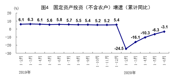 上半年,全國(guó)固定資產(chǎn)投資(不含農(nóng)戶)281603億元,同比下降3.1%,降幅比1-5月份收窄3.2個(gè)百分點(diǎn),比一季度收窄13.0個(gè)百分點(diǎn)。分領(lǐng)域看,基礎(chǔ)設(shè)施投資下降2.7%,制造業(yè)投資下降11.7%,降幅比一季度分別收窄17.0、13.5個(gè)百分點(diǎn);房地產(chǎn)開(kāi)發(fā)投資增長(zhǎng)1.9%,一季度為下降7.7%。全國(guó)商品房銷(xiāo)售面積69404萬(wàn)平方米,下降8.4%;商品房銷(xiāo)售額66895億元,下降5.4%,降幅比一季度分別收窄17.9、19.3個(gè)百分點(diǎn)。分產(chǎn)業(yè)看,第一產(chǎn)業(yè)投資增長(zhǎng)3.8%,一季度為下降13.8%;第二產(chǎn)業(yè)投資下降8.3%,第三產(chǎn)業(yè)投資下降1.0%,降幅比一季度分別收窄13.6、12.5個(gè)百分點(diǎn)。民間投資157867億元,下降7.3%,降幅比一季度收窄11.5個(gè)百分點(diǎn)。高技術(shù)產(chǎn)業(yè)投資增長(zhǎng)6.3%,一季度為下降12.1%;其中高技術(shù)制造業(yè)和高技術(shù)服務(wù)業(yè)投資分別增長(zhǎng)5.8%和7.2%。高技術(shù)制造業(yè)中,醫(yī)藥制造業(yè)、計(jì)算機(jī)及辦公設(shè)備制造業(yè)投資分別增長(zhǎng)13.6%、8.2%;高技術(shù)服務(wù)業(yè)中,電子商務(wù)服務(wù)業(yè)、科技成果轉(zhuǎn)化服務(wù)業(yè)投資分別增長(zhǎng)32.0%、21.8%。社會(huì)領(lǐng)域投資增長(zhǎng)5.3%,一季度為下降8.8%;其中衛(wèi)生、教育投資分別增長(zhǎng)15.2%、10.8%,一季度為分別下降0.9%、4.0%。從環(huán)比看,6月份固定資產(chǎn)投資(不含農(nóng)戶)比上月增長(zhǎng)5.91%。
