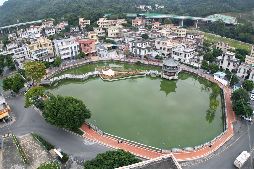 藍(lán)天白云,湖水波光粼粼,亭臺矗立,小橋蜿蜒,嶺南風(fēng)格的農(nóng)房處處可見……在神溪村的定溪片區(qū)湖心公園周邊,農(nóng)房風(fēng)貌管控提升工作為村容村貌、村民生活帶來的變化,非常顯著。