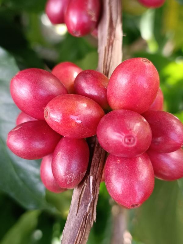 “德熱4號”系云南省德宏熱帶農(nóng)業(yè)科學(xué)研究所從葡萄牙熱帶研究所(IICT)咖啡銹病研究中心(CIFC)引進育種材料SL1-Sarchimor選育而成,完成了品種比較試驗、區(qū)域性試驗和生產(chǎn)性試驗?!暗聼?號”具有抗銹病、品質(zhì)優(yōu)良、豐產(chǎn)穩(wěn)產(chǎn)、生勢強、商品豆粒度大等優(yōu)點,經(jīng)現(xiàn)場測產(chǎn),芒市試驗點平均單株鮮果重6.86kg,按畝植333株折合,畝產(chǎn)鮮果2284.38kg,保山試驗點平均單株鮮果重5.84kg,按畝植333株折合,畝產(chǎn)鮮果1944.72kg。“德熱4號”適宜在我國云南德宏、保山、臨滄、普洱等小??Х纫酥矃^(qū)種植。