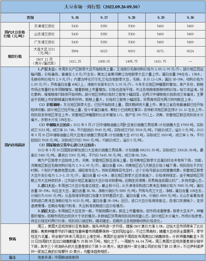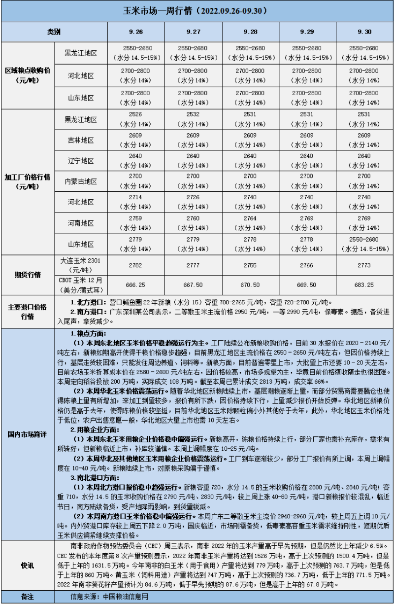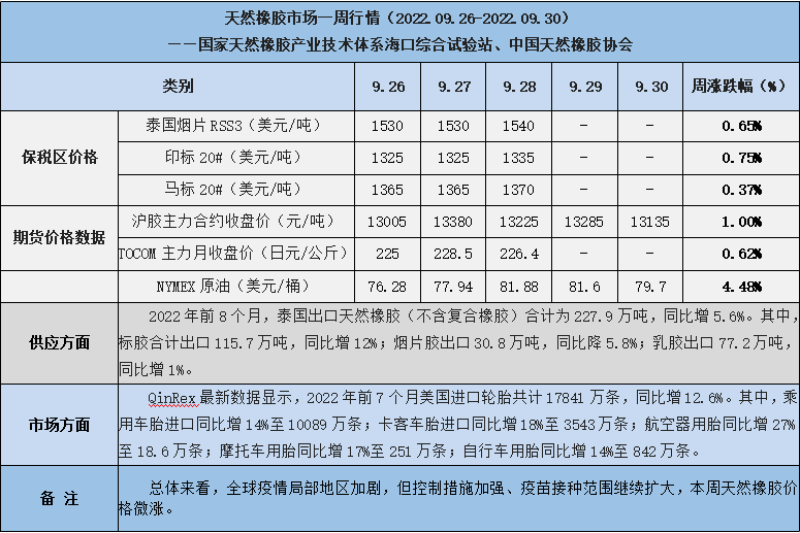 天然橡膠、大豆、玉米市場一周行情(2022.09.26-09.30)