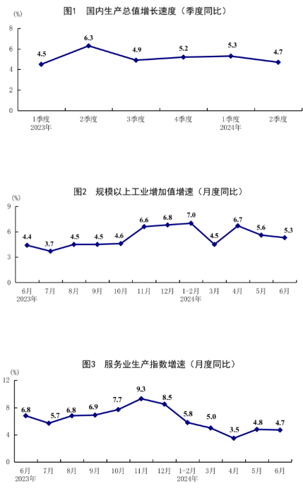 2023年各季度及2024年一季度、二季度GDP環(huán)比增速分別為1.8%、0.8%、1.5%、1.2%、1.5%和0.7%。