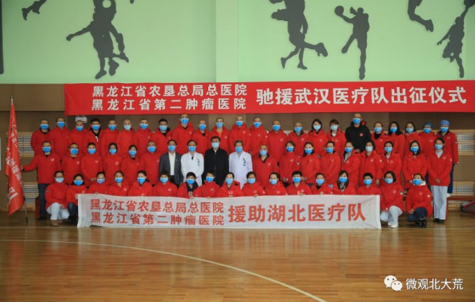 2月16日晚,農(nóng)墾總醫(yī)院接到省衛(wèi)健委關(guān)于組派黑龍江省第六批醫(yī)療隊(duì)援助湖北應(yīng)對新型冠狀病毒感染肺炎疫情的通知。院黨委對此項(xiàng)任務(wù)高度重視,連夜召開黨委會(huì),于當(dāng)天23時(shí)完成組建農(nóng)墾總醫(yī)院援助湖北醫(yī)療隊(duì)工作。從接到省衛(wèi)健委通知,到出征儀式結(jié)束,不到24小時(shí),一支由15名醫(yī)生、40名護(hù)士、1名感控專家組成的應(yīng)急醫(yī)療隊(duì)集結(jié)完成,并成立了臨時(shí)黨支部。在此之前,這家醫(yī)院已有706名黨員、團(tuán)員主動(dòng)簽下志愿者抗擊新冠肺炎疫情請戰(zhàn)書。