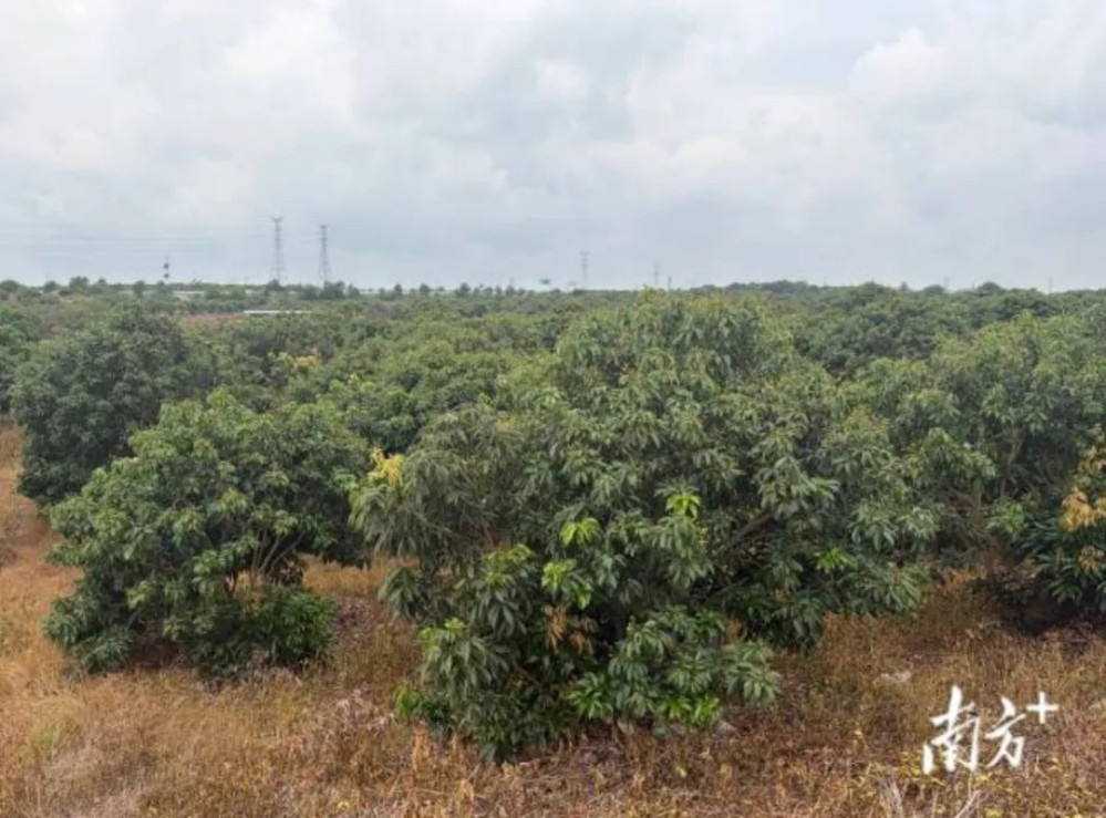 走進位于茂名電白的廣東農(nóng)墾水豐農(nóng)場荔枝基地,眼前的景象顛覆了記者的想象。經(jīng)過低產(chǎn)改造的荔枝林整齊劃一,冰荔、嶺豐糯、仙進奉等高端晚熟品種掛滿了果實,工人們正準(zhǔn)備進行疏果。